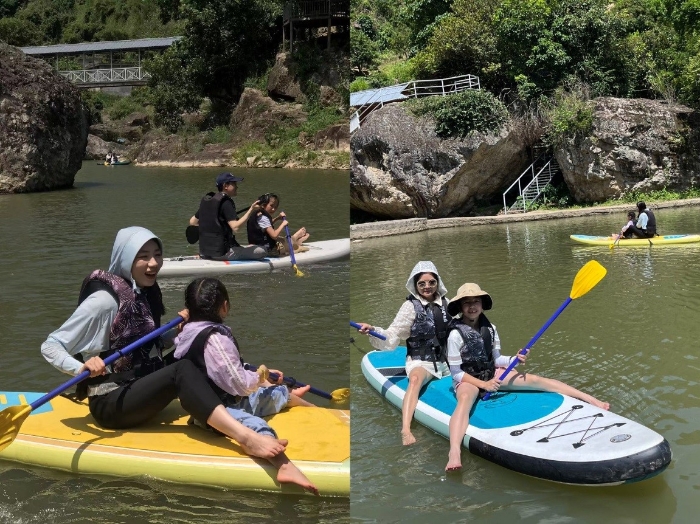 自由运动时间,,,,,,,在湖光掩映中,,,,,,,各人怀着愉悦的心情,,,,,,,各自三两组队,,,,,,,有结伴徒步爬山的,,,,,,,有一起探寻峡谷的,,,,,,,有去上游赏瀑布的,,,,,,,有体验垂纶兴趣一起交流履历的,,,,,,,更有来到溪谷坦荡区,,,,,,,穿上救生衣,,,,,,,踏上皮划艇,,,,,,,即便烈日暴晒也要撑起双叶桨恣意在碧水中穿梭的……  彼时,,,,,,,所有人凝心聚力,,,,,,,团结一致,,,,,,,伙伴们迸发出了宁折不弯的顽强劲头,,,,,,,不离不弃不落伍,,,,,,,怀揣顶级游戏入口67381情怀齐头并进。 。。。。。。。